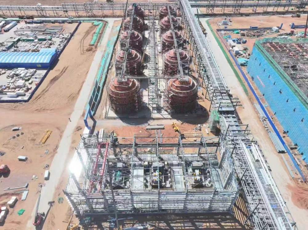 ▲鄂能化公司10万吨/年液态阳光项目工程建设进入高潮