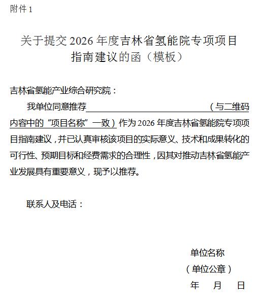 1.关于提交2026年度吉林省氢能院专项项目指南建议的函(模板).docx