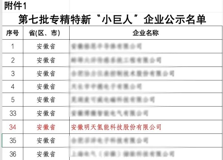 近日,国家工业和信息化部正式发布第七批国家级专精特新“小巨人”企业名单,深耕氢能核心技术研发与应用的明天氢能公司成功入选。这一重量级资质的获得,标志着公司在氢能技术创新、产品实力、市场前景及专业化发展等方面获得了国家层面的高度认可与肯定,是公司发展历程中的重要里程碑。