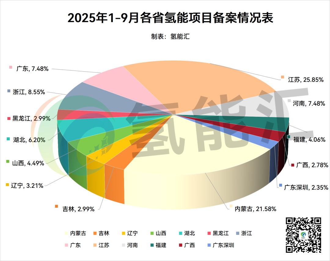 2025年1-9月氢能项目全国获核准的省市分别是内蒙古、吉林、辽宁、山西、湖北、黑龙江、浙江、广东、江苏、河南、福建、广西、广东深圳等13个省市。
