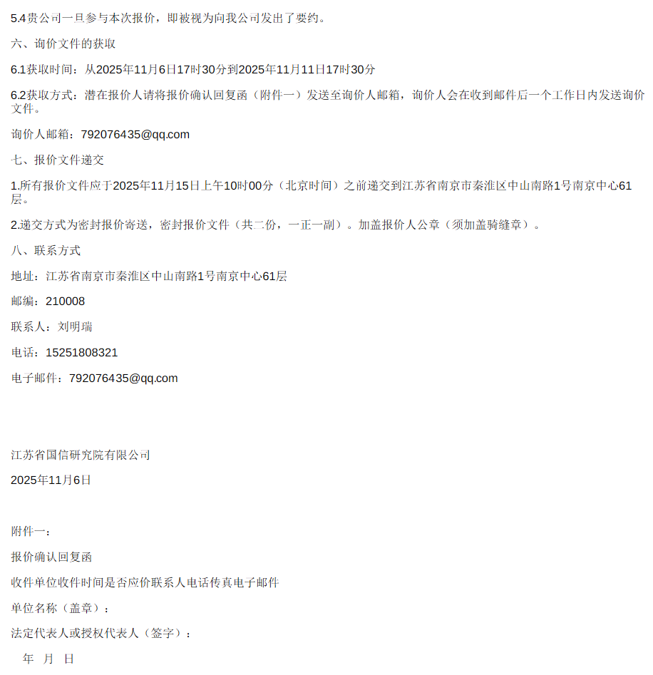工期要求:计划2025年11月30日前开始研究工作,2026年5月31日前取得研究成果。