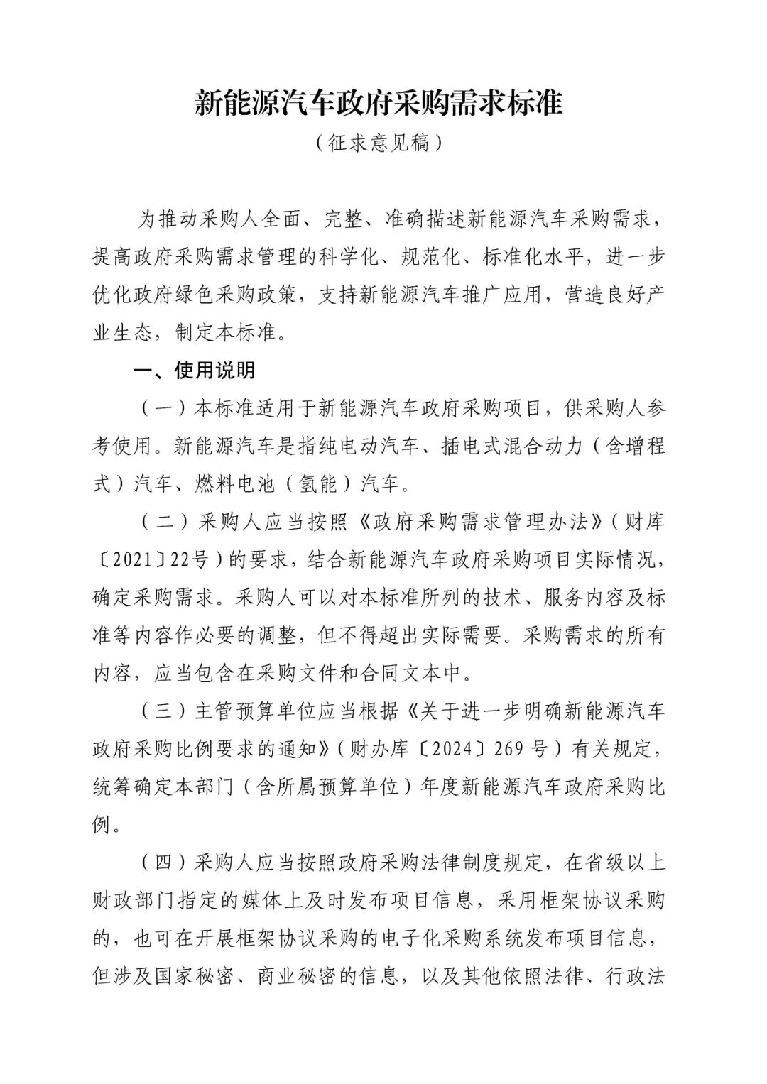 附件下载:新能源汽车政府采购需求标准(征求意见稿).pdf