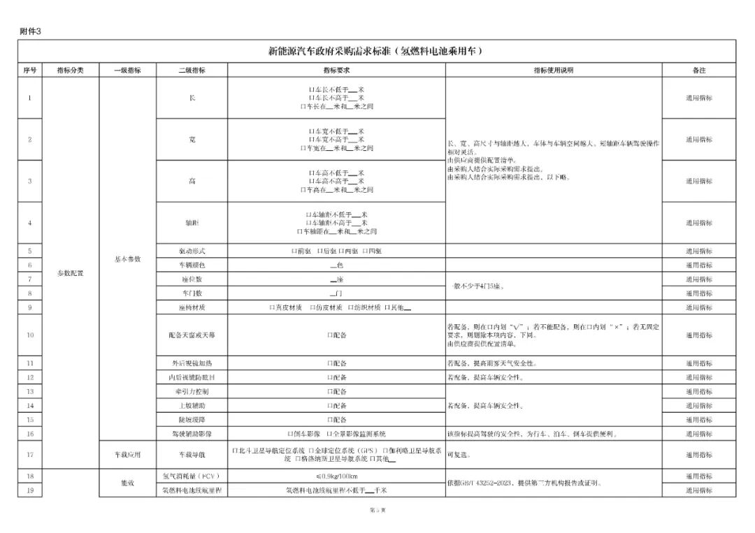 其中,氢燃料电池乘用车要求氢气消耗量≤0.9kg/100km。
