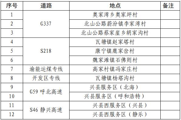 兴县综合能源站布局12个,其中,高速上4个,国道上3个(G337),省道上3个(S218),专线上2个(渝能运煤专线1个,开发区专线1个)。