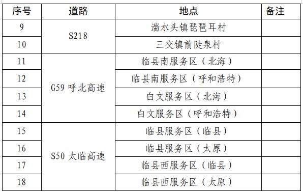 临县综合能源站布局18个,其中,高速上8个,国道上2个(G339),省道上8个(S254上5个,S254改道上1个,S218上2个)。