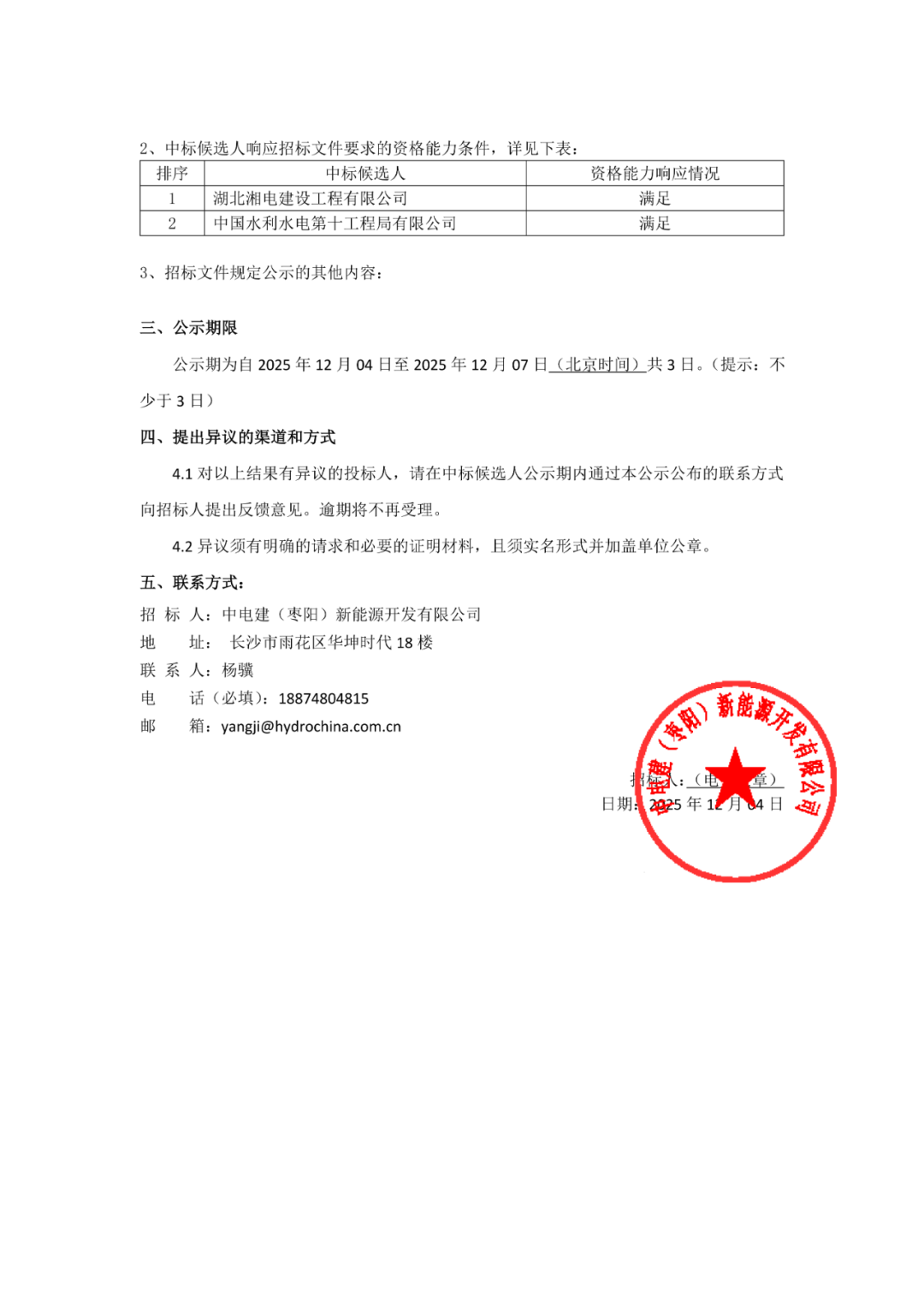 能源圈获悉,近日,中国电建电建新能源公司枣阳200MW光伏发电及配套制氢项目送出工程EPC总承包采购项目中标候选人公示。