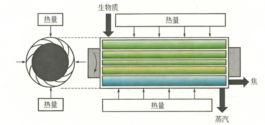 生物质热解是将木质纤维素类原料在隔绝氧气的条件下快速加热,使其分解为生物油、不可凝气体与焦炭的过程。反应器型式与供热方式直接决定产物分布与后续制氢效率。目前工业界主流的四种反应器——鼓泡/喷动流化床、循环流化床、烧蚀涡流床与旋转锥反应器——各具特色,已进入中试或示范阶段。