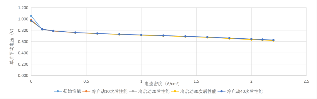40次-30℃冷启动耐久试验全流程无辅助加热,无人员介入,程序自动化,40次均无故障启动,过程中玉柴燃料电池堆的性能稳定如常。