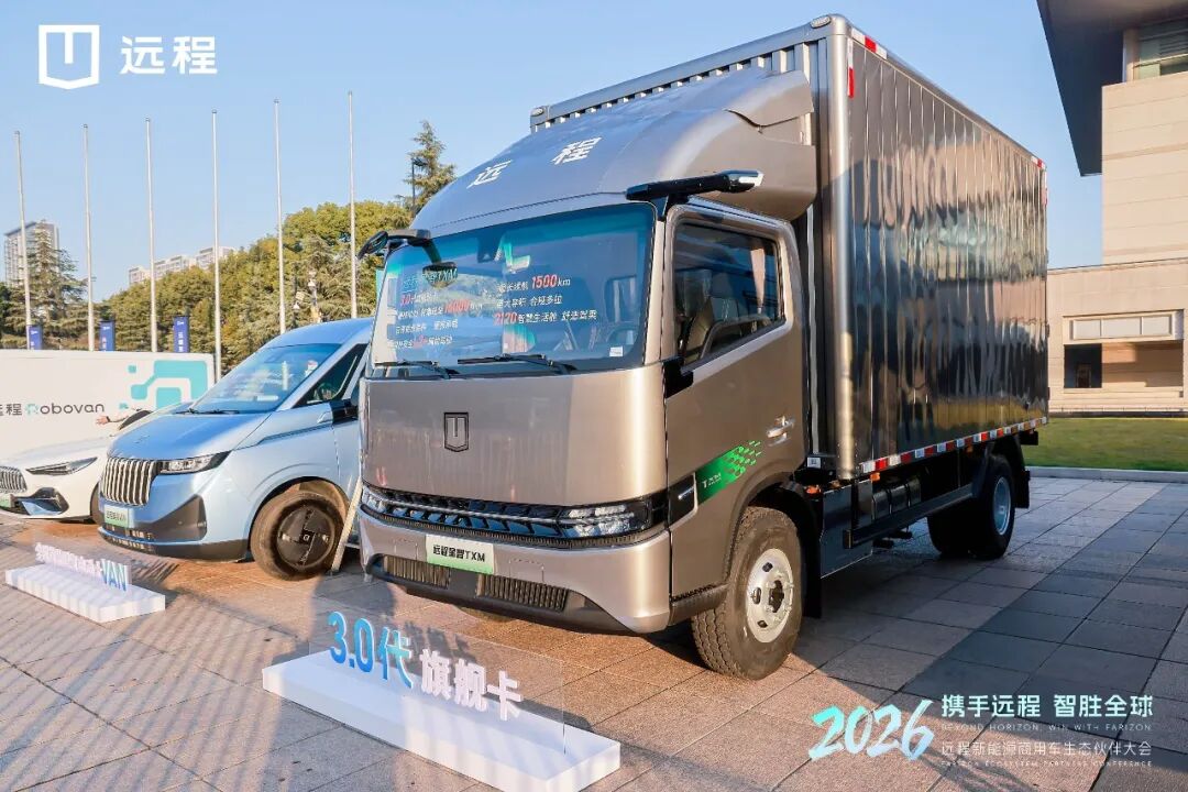 基于远程星智轻卡连续5年销冠基础,远程推出全球首个3.0代新能源轻卡平台——“X平台”,满足4.5-14吨的总质量带宽、200公里到1500公里的续航带宽以及120kW到235kw的动力带宽,纯电车型优于行业同吨位平均水平5%以上,醇氢电动车型优于燃油车行业平均水平40%以上,基于“X平台”打造的全新轻卡远程星智T系列将于2026年一季度上市。