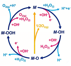 O* + H₂O → OOH* + H+ + e– (2−3)
