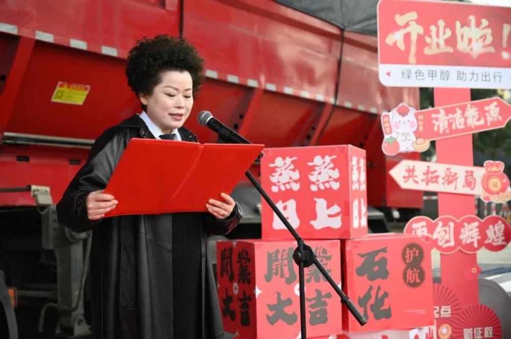 当天上午10点18分,柱塘甲醇加能站开业仪式如期启幕,现场氛围热烈隆重。
