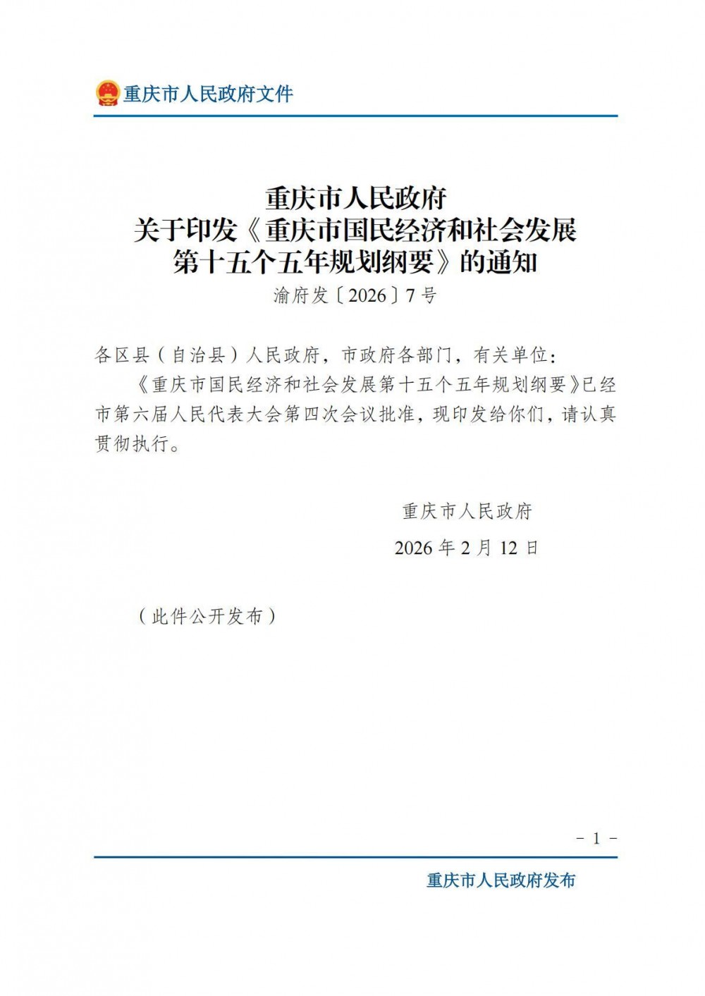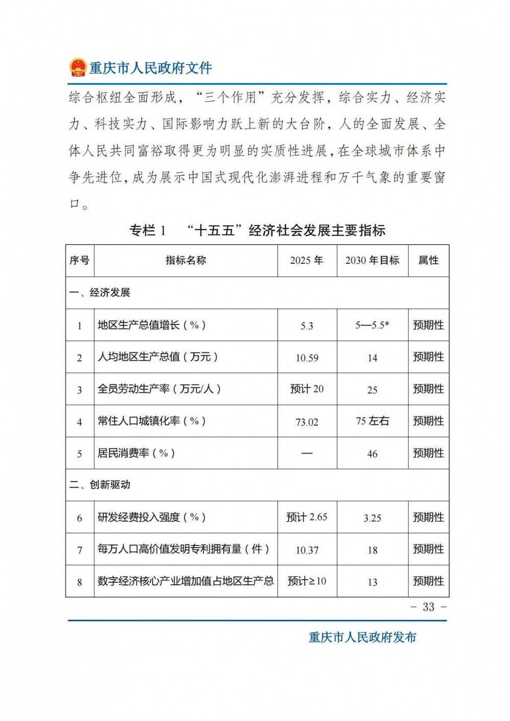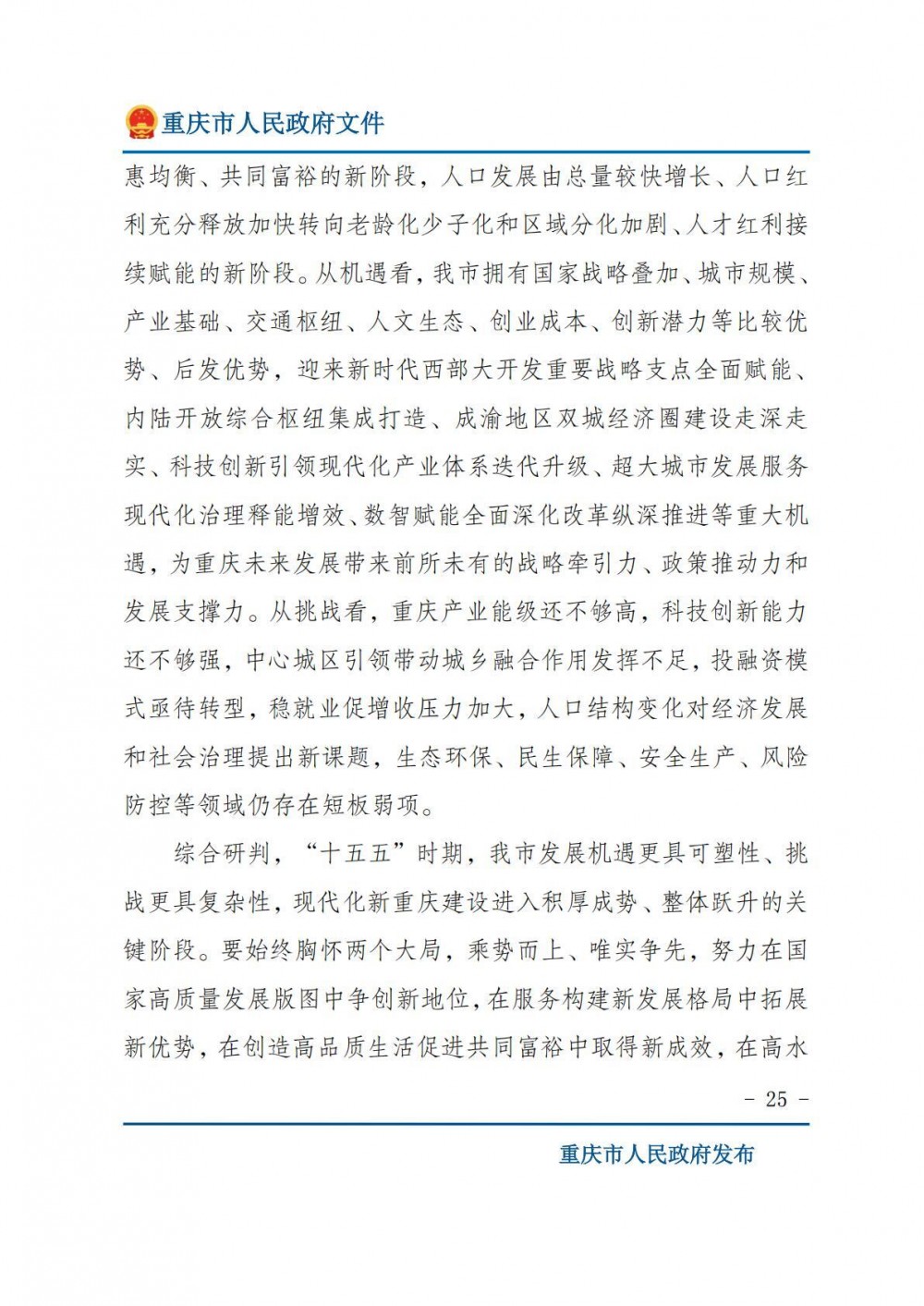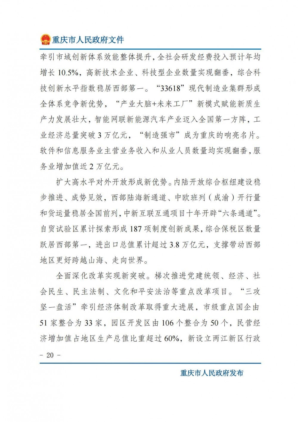 重庆市人民政府关于印发《重庆市国民经济和社会发展第十五个五年规划纲要》的通知.pdf