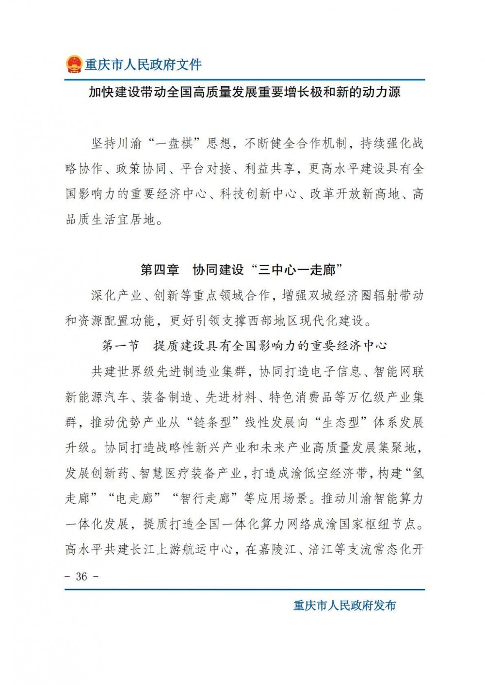 文件指出,协同打造战略性新兴产业和未来产业高质量发展集聚地,发展创新药、智慧医疗装备产业,打造成渝低空经济带,构建“氢走廊”“电走廊”“智行走廊”等应用场景。