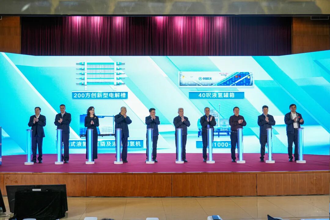 仪式现场,与会领导和嘉宾共同为四款新产品揭幕。本次发布的新产品将深度赋能氢能产业链各环节,通过提供更高效、可靠的装备与解决方案,有效促进技术升级与成本优化,全面彰显六院在氢能产业链中的技术引领力、产业化能力与品牌影响力,标志着六院液氢装备体系迈入商业化新阶段,将为集团公司落实国家“双碳”战略、推动航天技术成果转化、培育战略性新兴产业、打造新质生产力提供强劲动力。