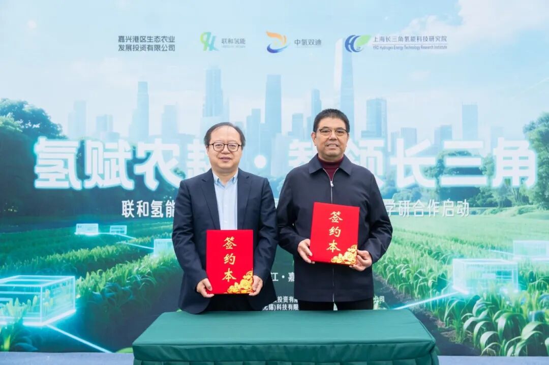氢农业作为绿色低碳农业的前沿方向,其发展离不开政企协同与产学研的深度融合。联和氢能与中氢双迪代表共同签署了产学研合作协议,双方将携手整合科研力量与产业资源,为氢农业的技术攻关与成果转化注入强劲动力。