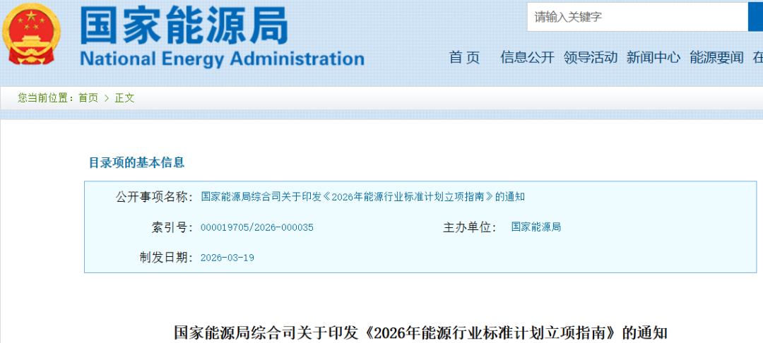 能源圈获悉,3月24日,国家能源局综合司关于印发《2026年能源行业标准计划立项指南》的通知。