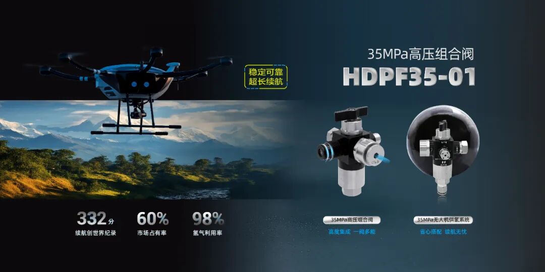 瀚氢动力自成立以来,在无人机供氢系统领域一直处于市场主导地位,市占率高达60%,产品远销海内外,高集成度35MPa无人机组合阀也进行了多次更新迭代,产品性能得到了充分的市场验证。