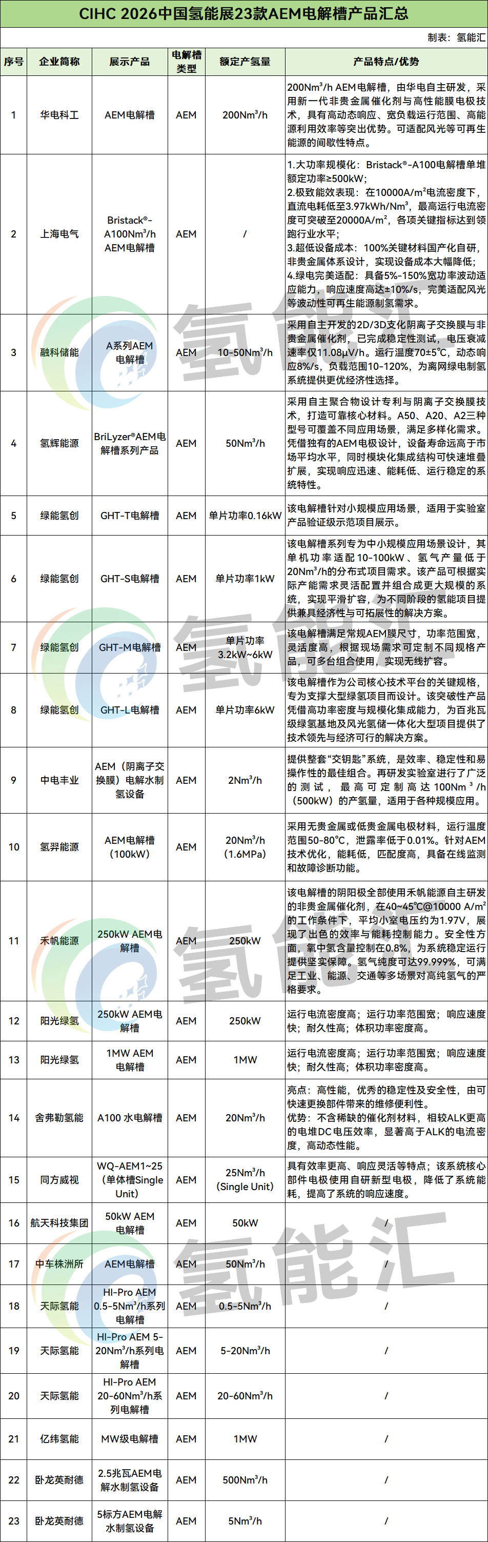 能源圈通过梳理,共有16家企业展示了23款AEM电解槽产品,企业包括华电科工、上海电气、融科储能、氢辉能源、绿能氢创、中电丰业、氢羿能源、禾帆能源、阳光绿氢、舍弗勒氢能、同方威视、航天科技集团、中车株洲所、天际氢能、亿纬氢能、卧龙英耐德。