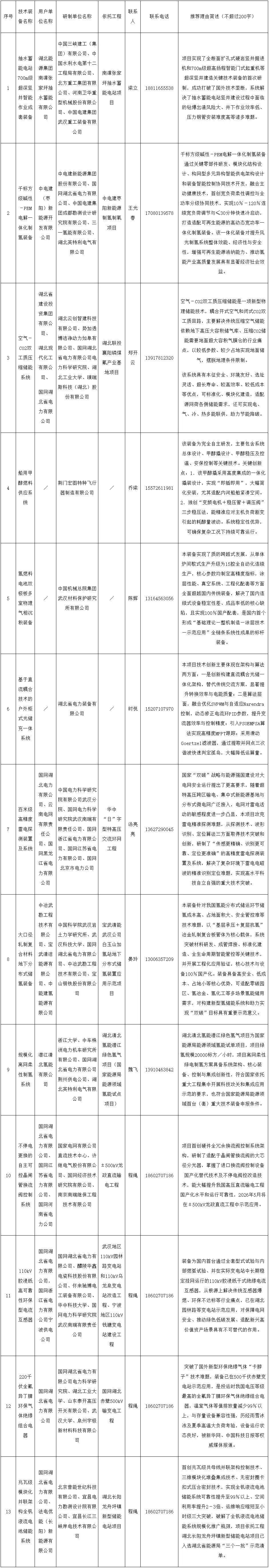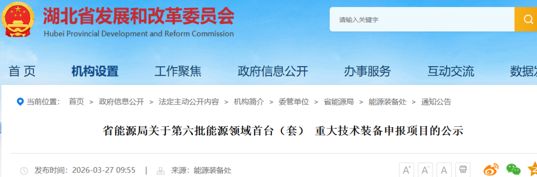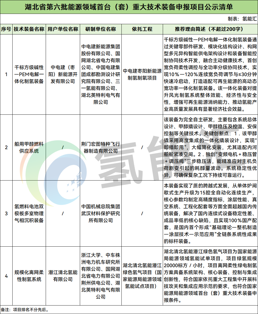 能源圈获悉,近日,湖北省能源局关于第六批能源领域首台(套) 重大技术装备申报项目的公示。