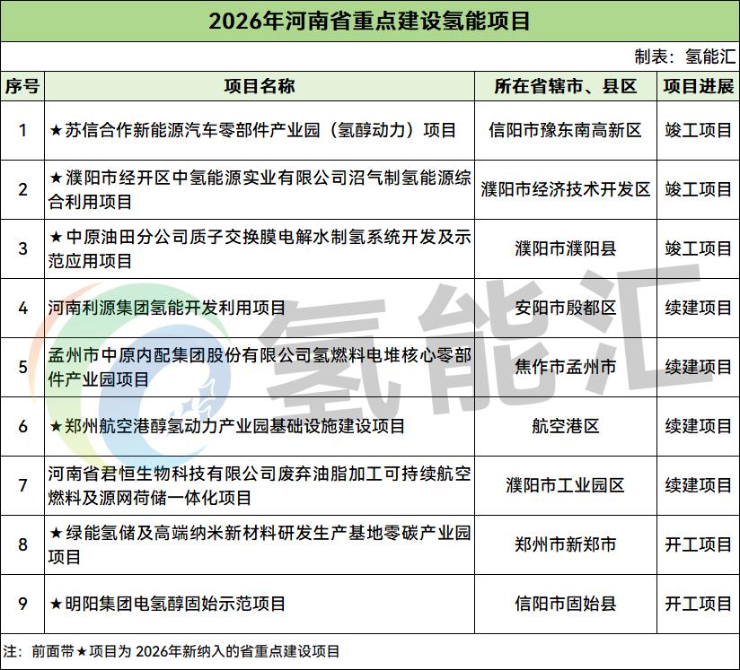 能源圈通过梳理,重点建设氢能项目有9项,分别是: