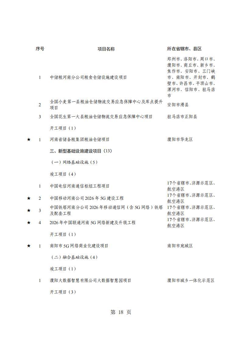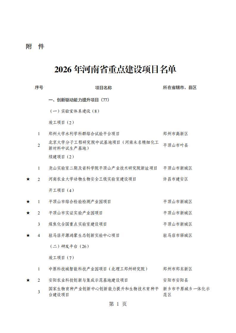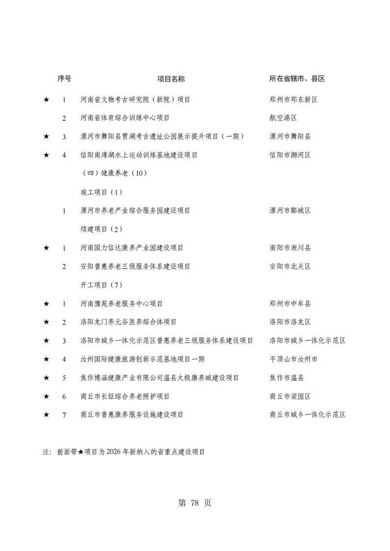 河南省发展和改革委员会关于印发2026年河南省重点建设项目名单的通知