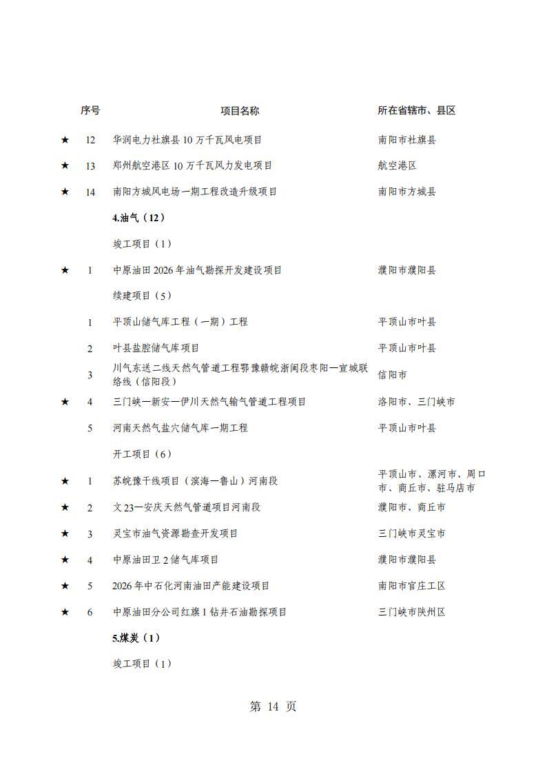 能源圈获悉,近日,河南省发展和改革委员会关于印发2026年河南省重点建设项目名单的通知。