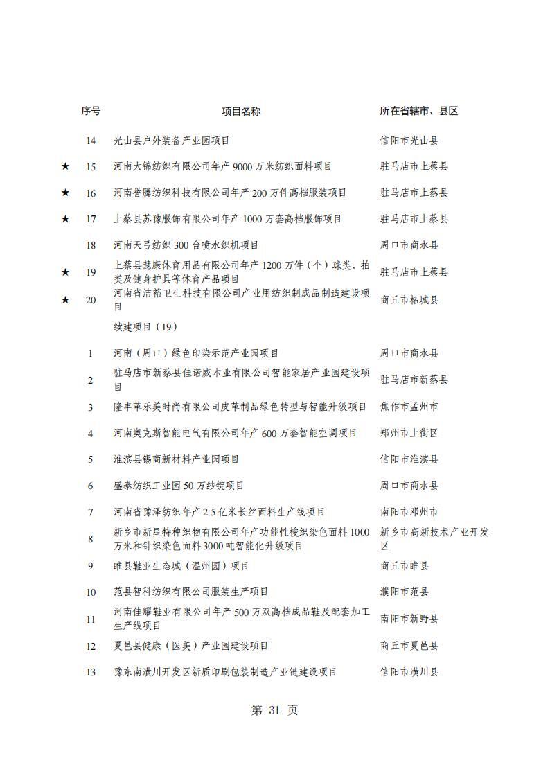经省政府同意,现将2026年河南省重点建设项目名单印发给你们。2026年省重点项目1418个、总投资约3.2万亿元,力争年度完成投资1万亿元以上。各地各有关单位要聚焦“1+2+4+N”目标任务体系,把重点项目建设作为加快建设现代化产业体系的有效载体,作为纵深推进融入服务全国统一大市场、推进高质量发展的强力抓手,从项目切入、以项目推动、用项目支撑,完善重点项目协调推进机制,在审批服务、要素保障、进展调度、问题协调等方面靠前发力、持续用力,切实营造良好建设环境,保障每一个省重点项目顺利实施,为圆满完成全年目标任务提供强力项目支撑。
