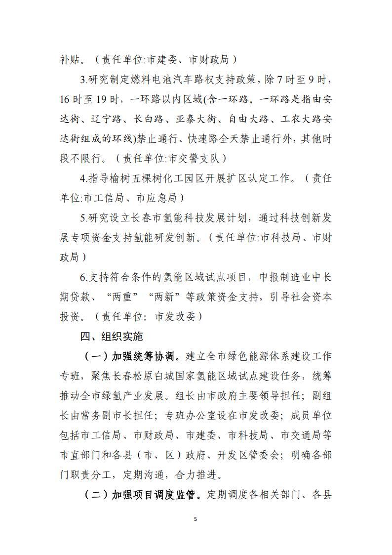 申报国家氢能综合应用试点城市群。联合一汽解放等企业,深入挖掘燃料电池汽车、绿色氨醇、创新应用等应用场景,积极申报国家氢能综合应用试点城市群。结合省内免收氢能汽车高速费政策,提出氢能车辆推广计划纳入申报方案实施。