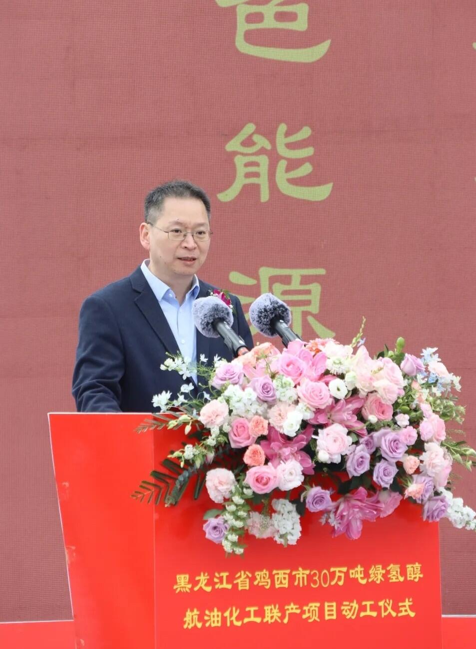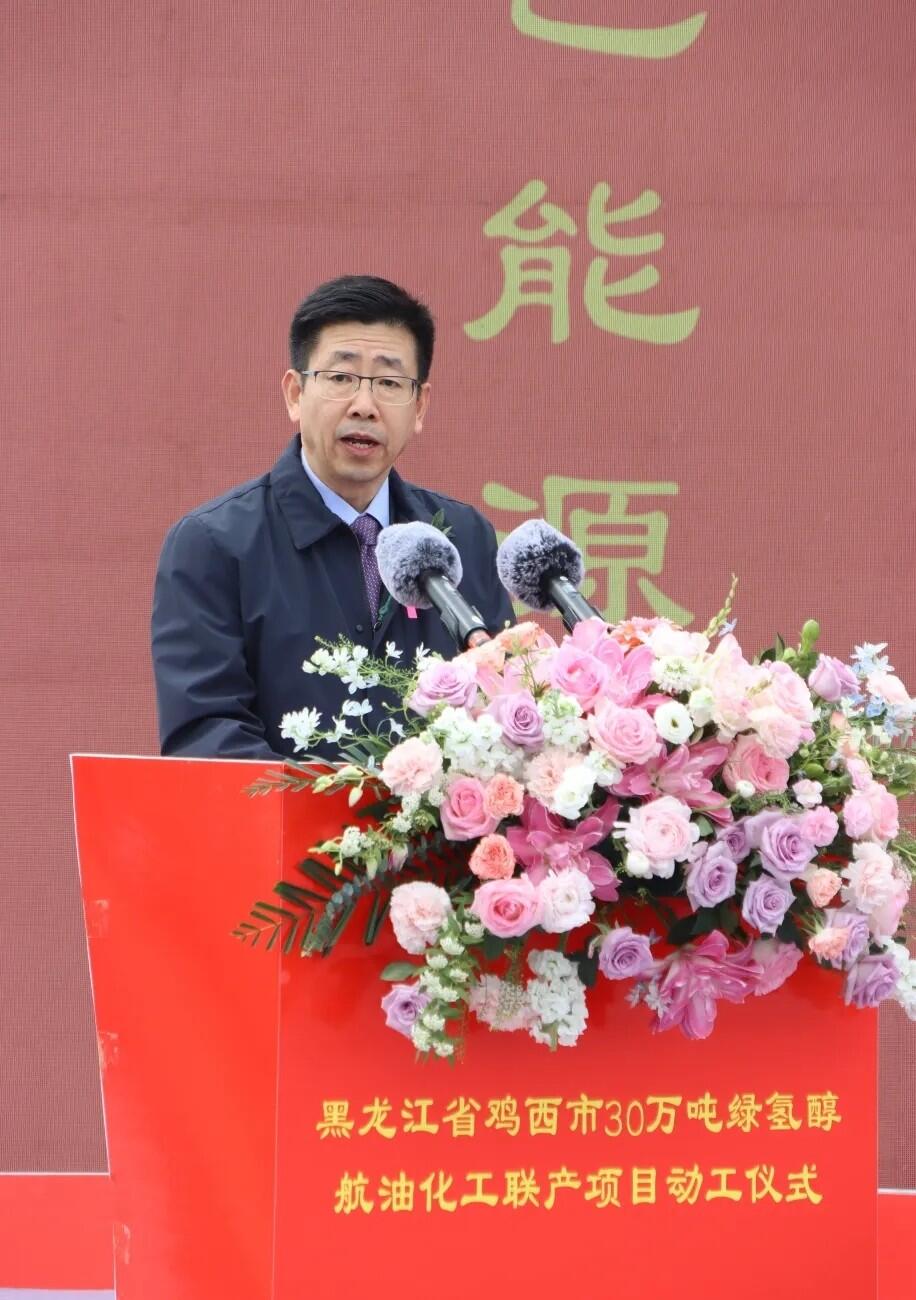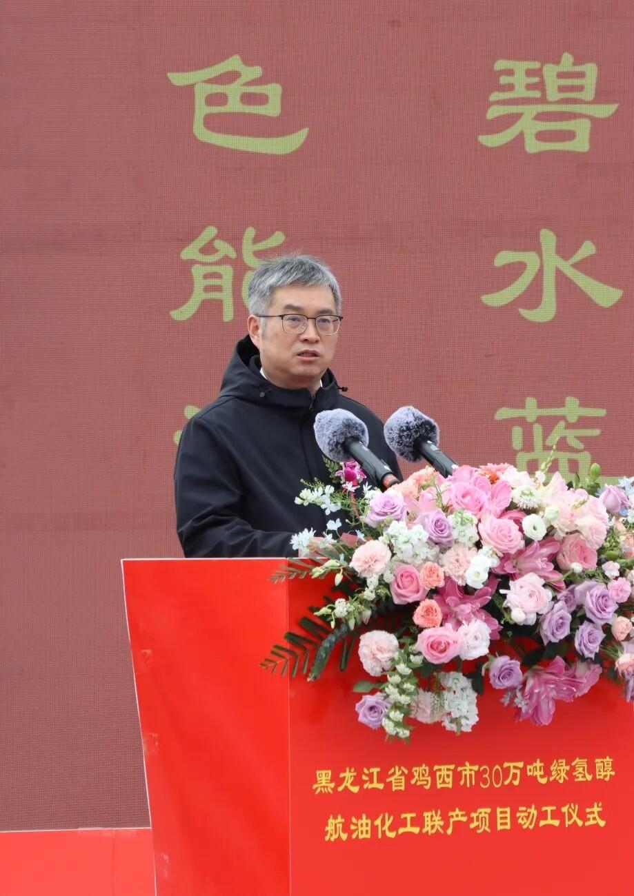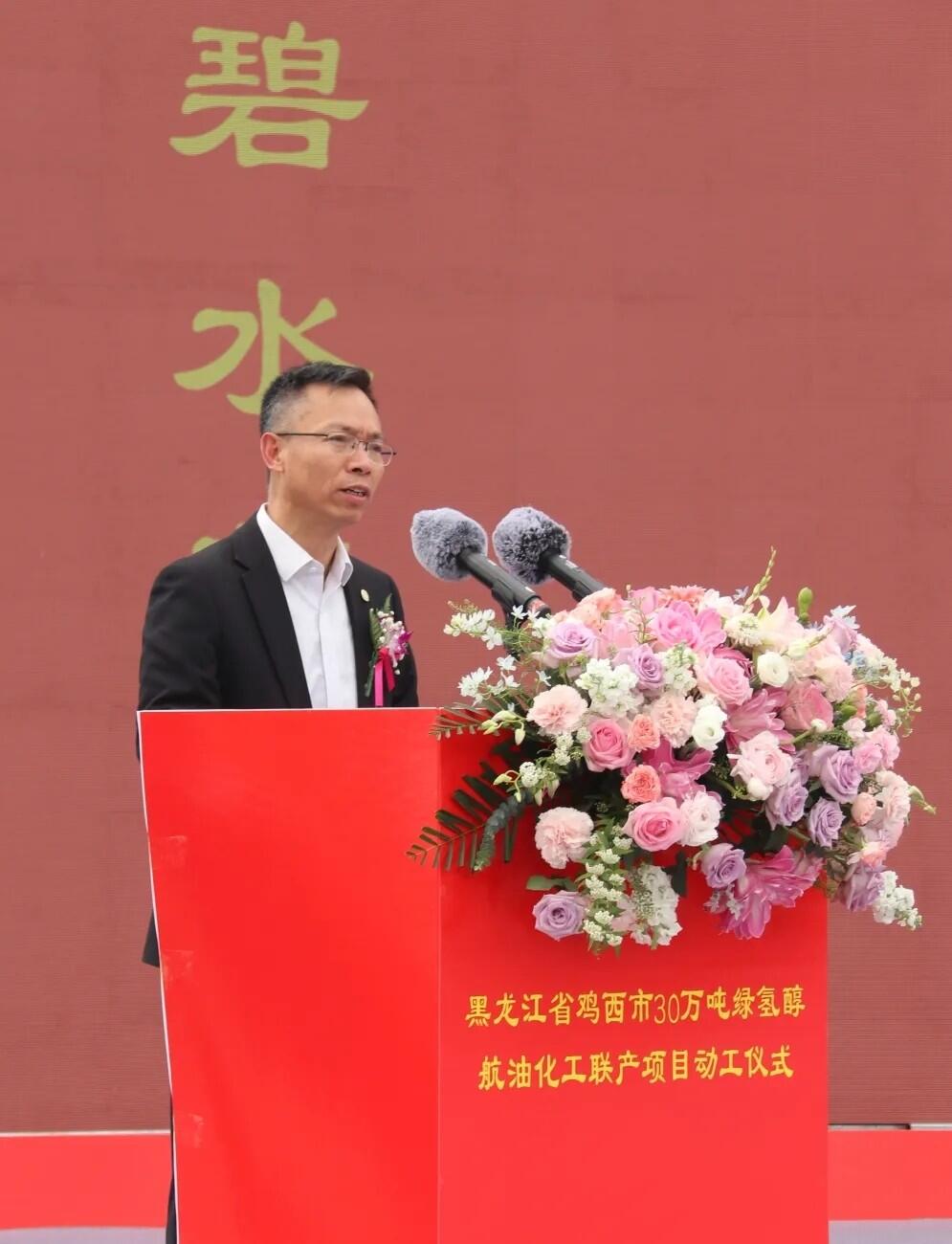 动工仪式上,嘉泽新能源股份有限公司董事长陈波致辞,他首先对在项目推进过程中给予极大支持的黑龙江省各级政府,鸡西市、鸡东县各级政府和有关部门表示感谢。他指出,嘉泽新能自2021年进驻鸡西以来,精耕细作、稳步推进,从新能源装备制造园区到储能电池制造园区运营,从风电项目布局到绿色化工谋划,每一步发展都离不开各级党委政府和各界朋友的关心厚爱、支持帮助。鸡西市委、市政府紧扣全省战略部署,依托得天独厚的风光资源与农林资源优势,持续优化营商环境,以务实高效的服务、开放包容的姿态,为企业扎根发展营造了一流生态。他表示,站在东北全面振兴的关键节点,作为项目投资建设主体,嘉泽新能将以实业报国、创新赋能为己任,全面践行“大国工匠精神”,携手核心技术科研单位、行业领军企业、战略合作伙伴,严格对标国家绿色发展规范和黑龙江省“十五五”发展要求,坚持高标准规划、高质量建设、高效率推进,严守安全底线、严把质量关口、筑牢环保防线,与各方一道,秉持“一家人、一条心、一个目标,一起拼”的精神,全力以赴推动项目早投产、早见效、早惠民。努力将项目打造成为全国绿色化工示范标杆、政企合作共赢样板。并将以此次项目全面开工建设为契机,持续深化在龙江的布局,为国家“双碳”目标实现、为东北全面振兴、为龙江高质量发展贡献嘉泽力量。