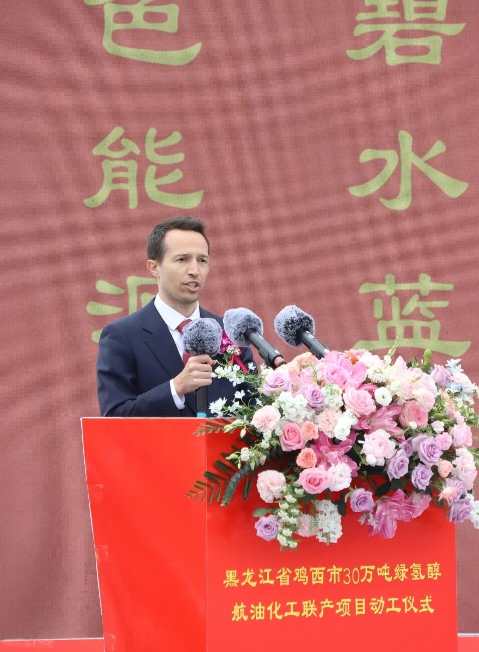 阿克森斯中国区技术总监ARTHUR BOUILLIOUX-LAFONT在致辞中表示,阿克森斯高度认可项目价值与前景,将持续发挥技术优势深化合作,与嘉泽新能共筑产业标杆、延伸价值链,助力东北振兴与区域高质量发展。