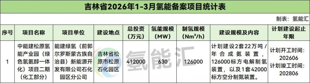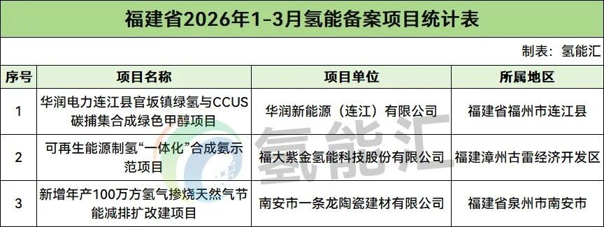 福建氢能备案项目3个。