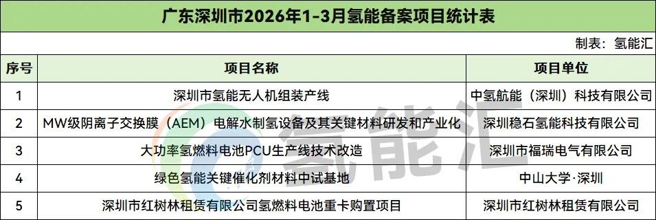 广东深圳市氢能备案项目5个。