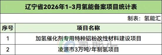 辽宁氢能备案项目2个。