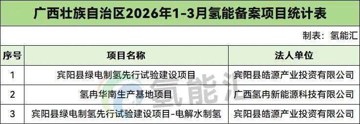 广西氢能备案项目3个。