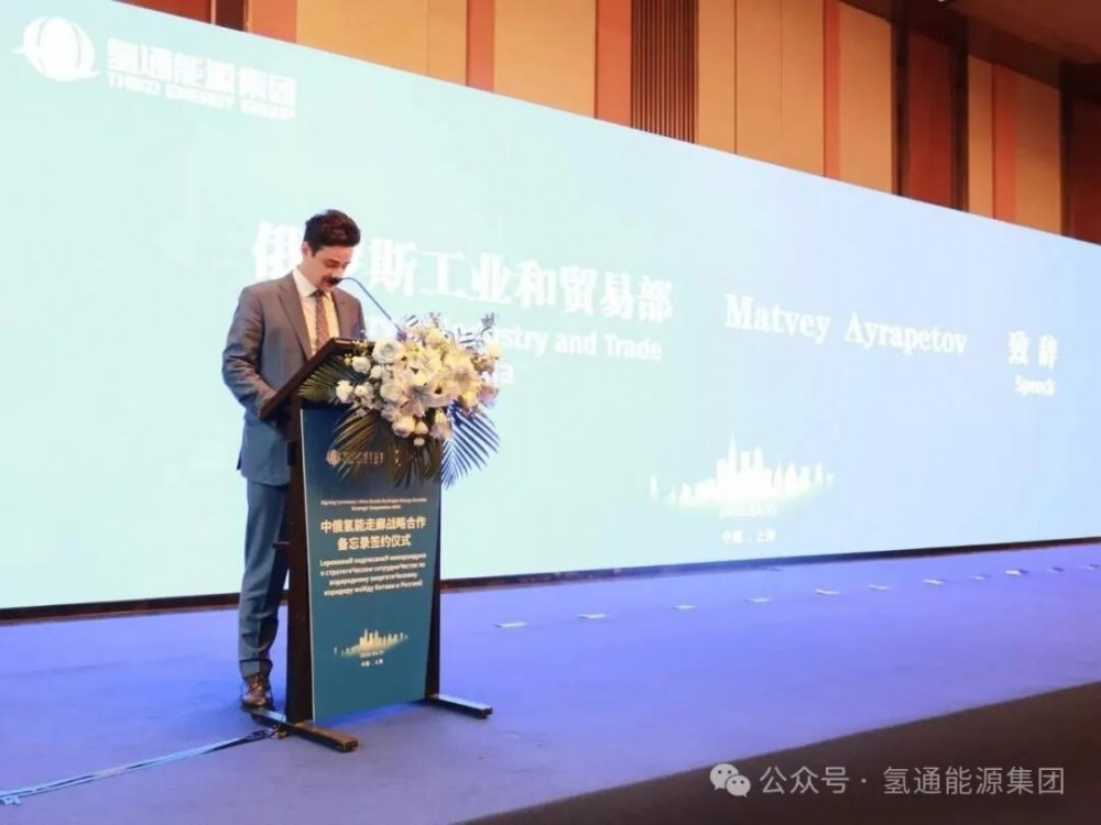 2026年4月12日,中俄氢走廊战略合作备忘录签约仪式在上海举行。俄罗斯联邦工业和贸易部副司长Matvey Ayrapetov率领俄罗斯代表团到访上海,氢通能源集团与俄方代表共同签署合作备忘录。