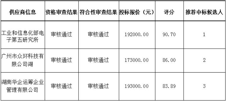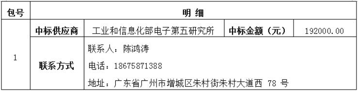 成交公告显示,中标供应商为工业和信息化部电子第五研究所,中标金额19.2万元。