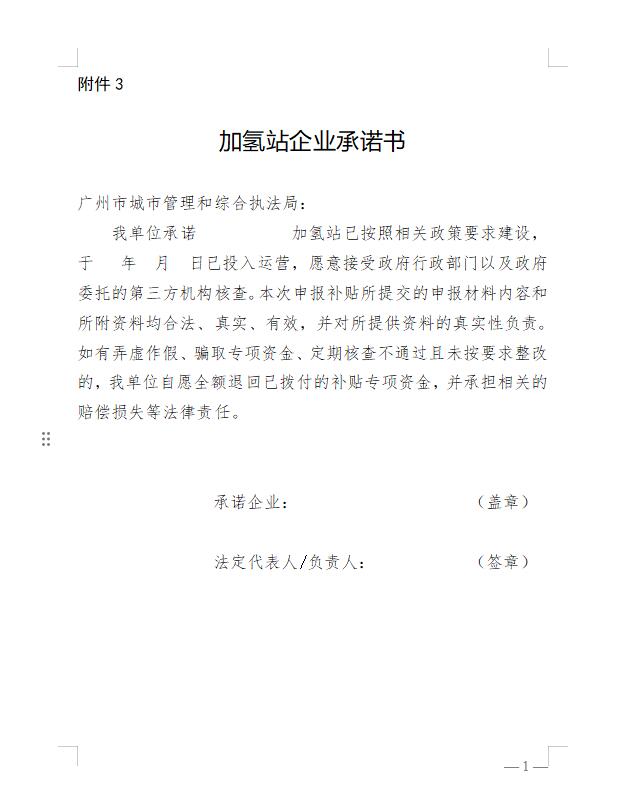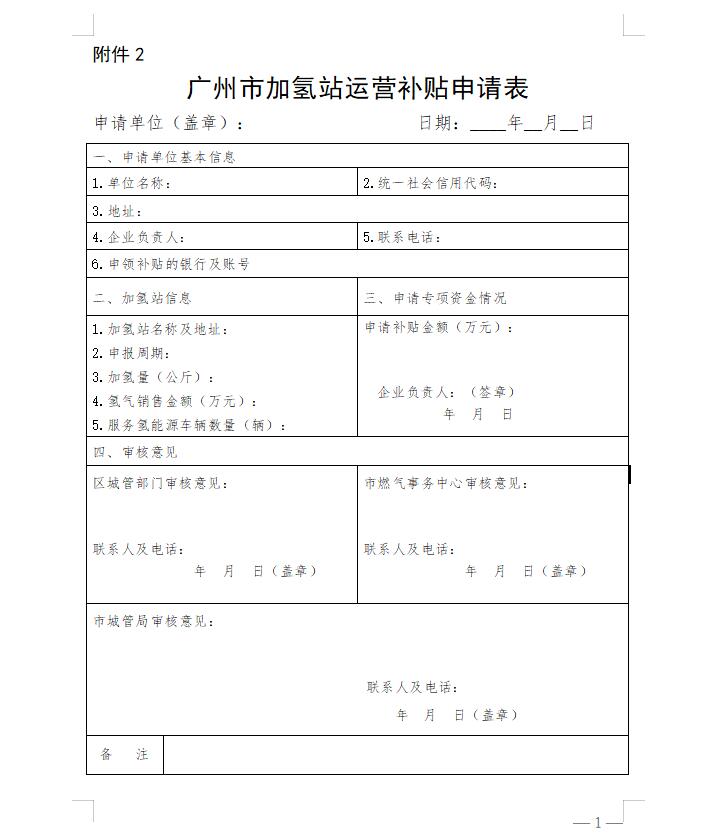 1.广州市加氢站运营补贴申请表(附件2);