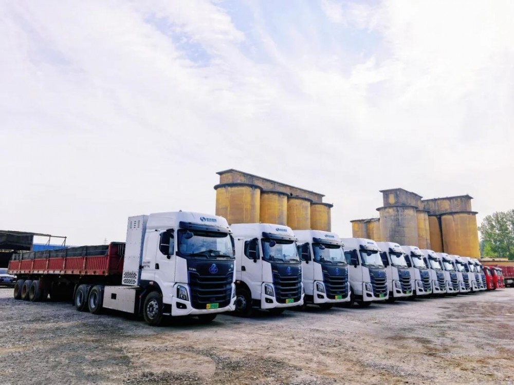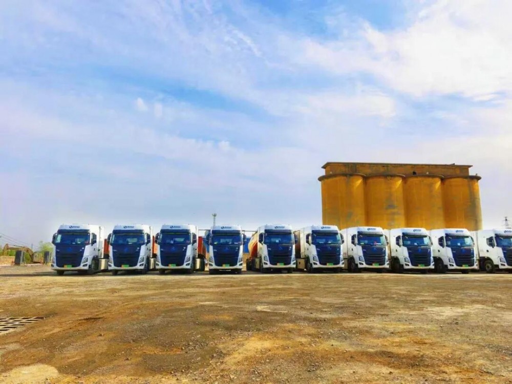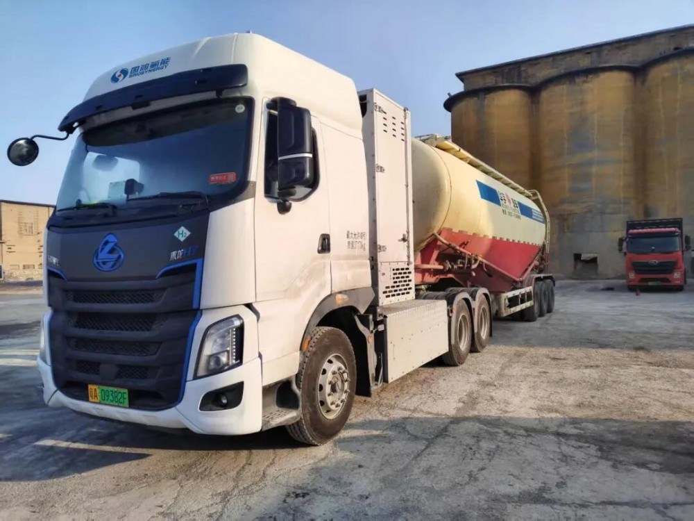 该批氢能重卡搭载国鸿氢能的燃料电池系统,主要承担矿粉、水泥粉及煤灰等大宗物料的干线运输。在单程100公里、满载40吨的典型工况下,车辆依托配套的撬装式加氢站,仅需20分钟即可完成补能,迅速投入下一趟运输循环,从而有效保障高强度、高频次的物流作业需求。