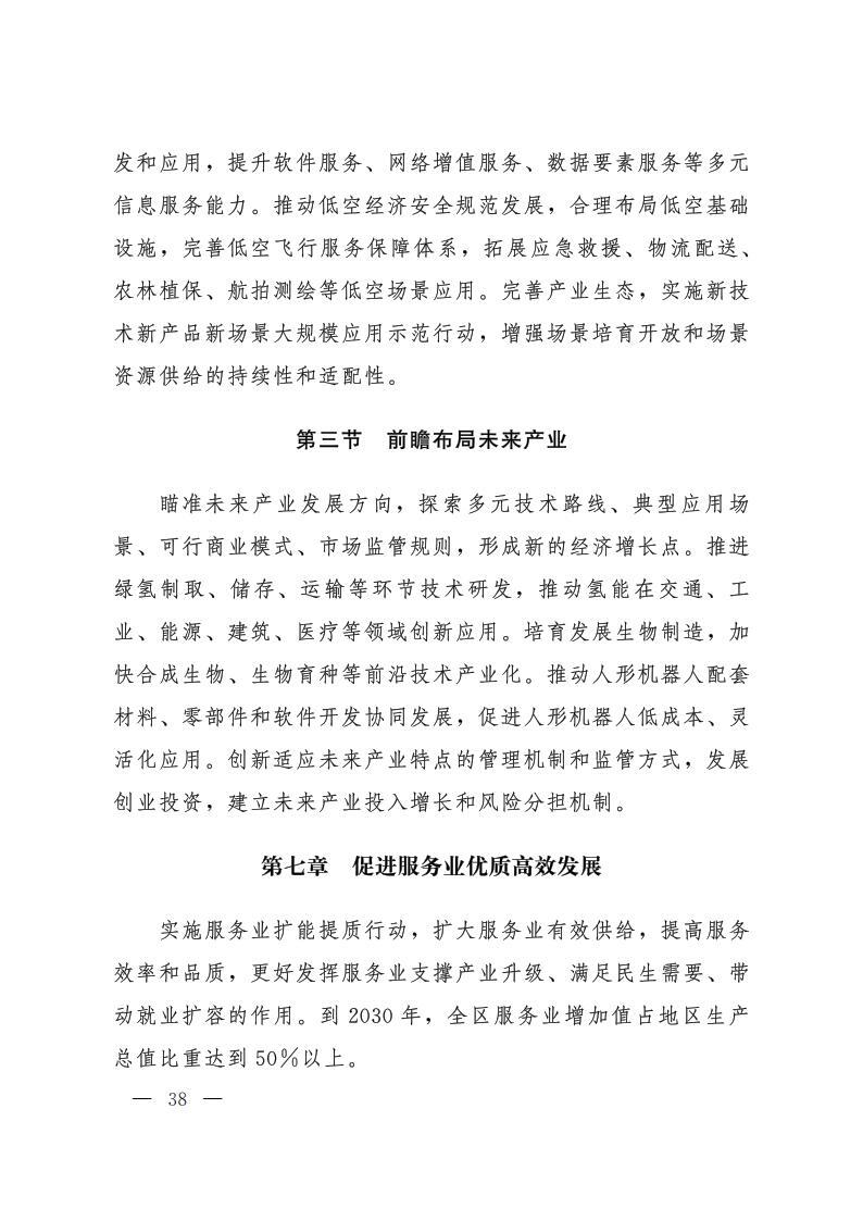 瞄准未来产业发展方向,探索多元技术路线、典型应用场景、可行商业模式、市场监管规则,形成新的经济增长点。推进绿氢制取、储存、运输等环节技术研发,推动氢能在交通、工业、能源、建筑、医疗等领域创新应用。培育发展生物制造,加快合成生物、生物育种等前沿技术产业化。推动人形机器人配套材料、零部件和软件开发协同发展,促进人形机器人低成本、灵活化应用。创新适应未来产业特点的管理机制和监管方式,发展创业投资,建立未来产业投入增长和风险分担机制。