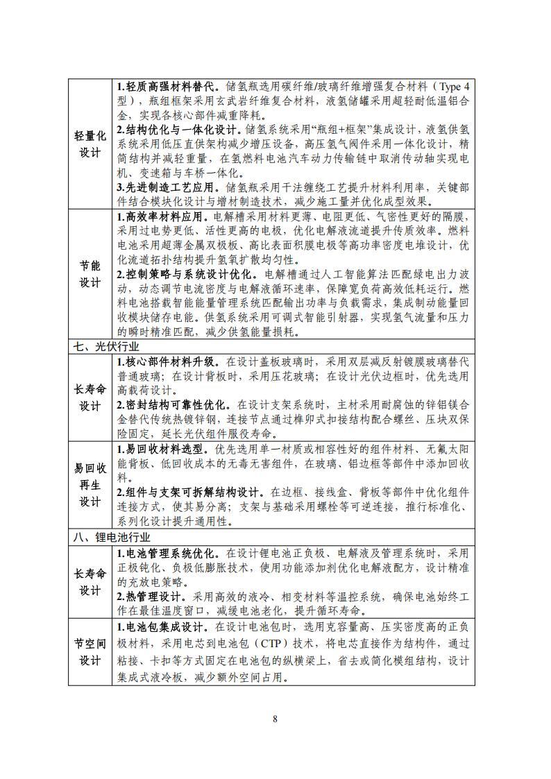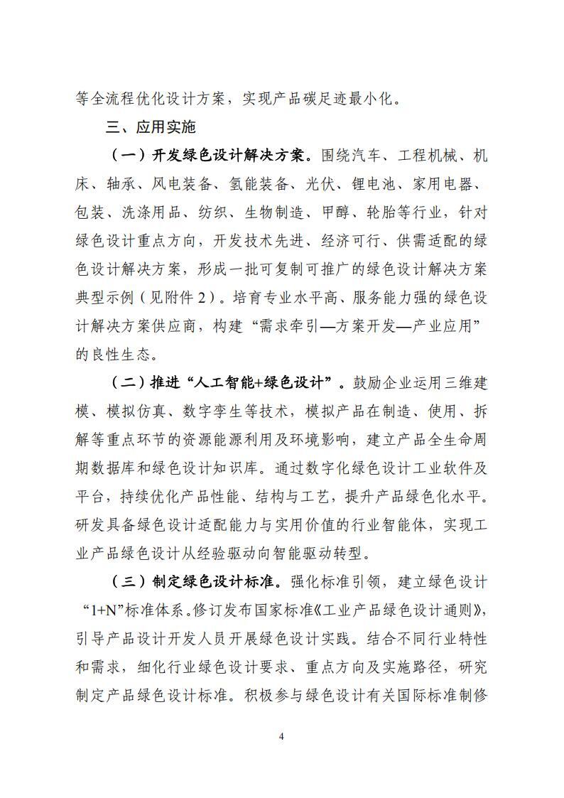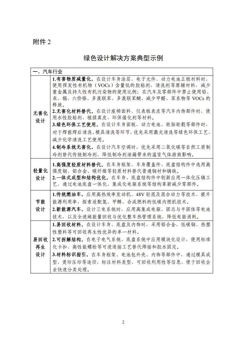 《设计指南》中提到:开发绿色设计解决方案。围绕汽车、工程机械、机床、轴承、风电装备、氢能装备、光伏、锂电池、家用电器、包装、洗涤用品、纺织、生物制造、甲醇、轮胎等行业,针对绿色设计重点方向,开发技术先进、经济可行、供需适配的绿色设计解决方案,形成一批可复制可推广的绿色设计解决方案典型示例。培育专业水平高、服务能力强的绿色设计解决方案供应商,构建“需求牵引—方案开发—产业应用”的良性生态。