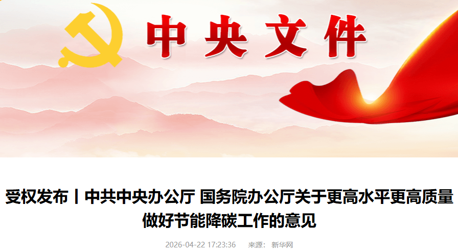 能源圈获悉,4月22日,中共中央办公厅 国务院办公厅关于更高水平更高质量做好节能降碳工作的意见。