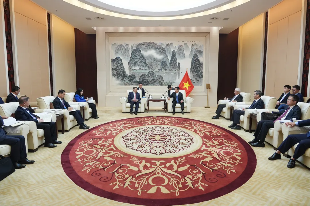 越南驻华大使范星梅,中国能建党委常委、总会计师李丽娜,中国能建葛洲坝集团党委书记、董事长谭华,以及双方有关部门、相关单位负责人参加会谈。