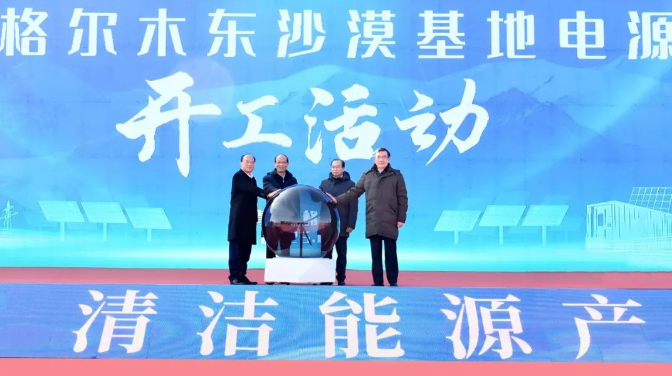 吴晓军、罗东川、江毅、廖品琥共同启动青海柴达木格尔木东沙漠基地电源项目。张锦刚主持活动。吴敬凯介绍基地项目开工准备情况。青海省海西州主要负责同志致辞。