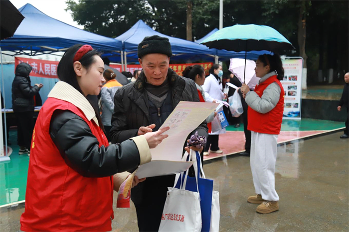 上午9点,现场虽下着绵绵细雨,但仍然吸引了众多志愿者和群众踊跃参与。各参与部门结合自身特点,精心策划了丰富多彩、接地气、暖人心的服务项目。生态保护志愿者用问答小游戏为群众科普生态保护的重要性,呼吁大家共同保护环境;医疗团队则支起义诊台,为市民提供免费健康检查,耐心解答健康问题,传递健康生活理念。同时,应急管理知识科普、森林防灭火知识普及、创建文明城市等主题活动也吸引了大批市民前来参与。
