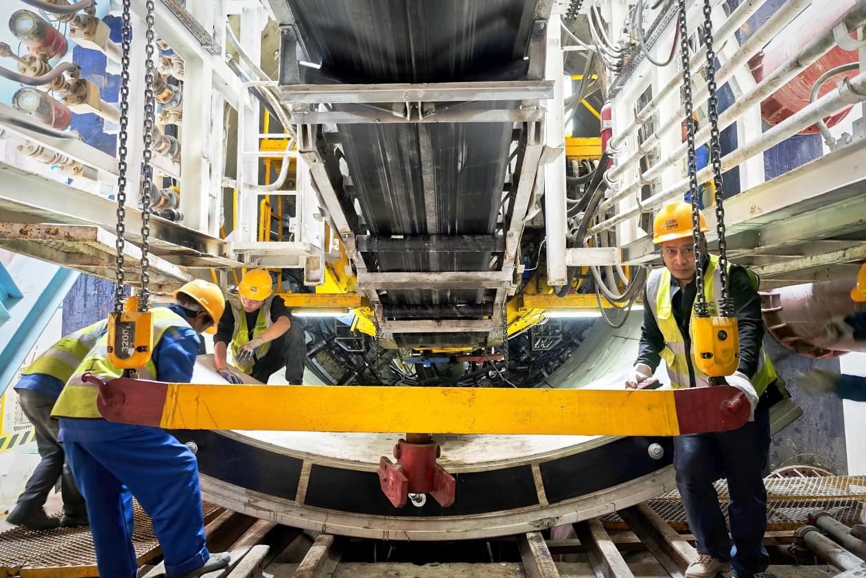 武汉市轨道交通11号线四期自汉阳站至白沙洲,是支撑城市东西向垂江发展的重要轴线。始发仪式上,盾构现场负责人张沛介绍,芳草路站-梅林站区间采用两台土压平衡复合盾构机,开挖直径6440毫米、整机长度约83米、总重量535吨、最大推力42550千牛、最大掘进速度80毫米/分钟、主驱动功率945千瓦。(工人日报客户端记者 张翀 通讯员 袁永华 熊伟 实习生 汪颀伟)