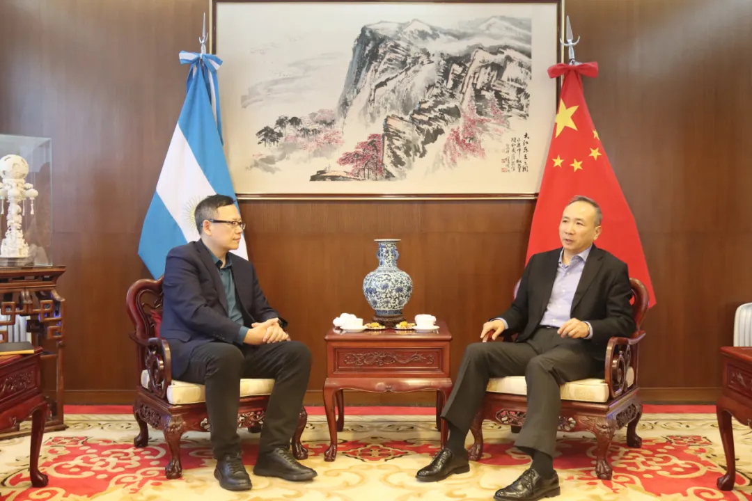 当地时间3月20日,陈刚一行赴阿根廷首都布宜诺斯艾利斯拜会中国驻阿根廷大使王卫,经济商务参赞安光辉,围绕国别政治经济形势及重点项目推进等方面进行深入交流。