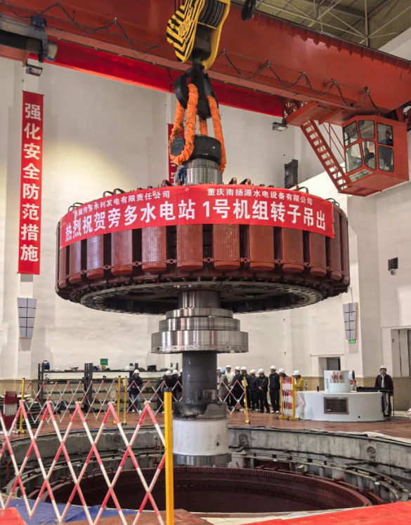 4月4日,西藏开投旁多水电站1号水轮发电机组A级检修顺利完成核心组件转子吊出作业,公司领导及各专业技术人员现场监督指导。