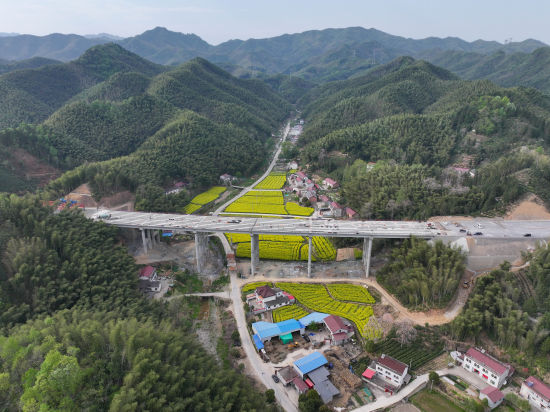 中新网安徽新闻4月21日电 作为国家综合立体交通网和安徽省“五纵十横”高速公路网的重要组成部分,位于皖西大别山深处的和襄高速公路六安段犹如钢铁巨龙蜿蜒于崇山峻岭之间。目前,数千名建设者奋战在施工一线,全力冲刺通车目标。