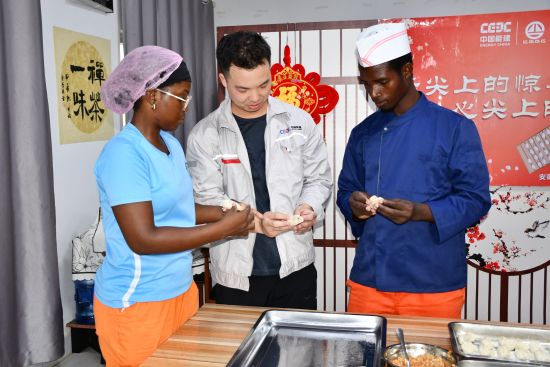当地时间5月1日,正值国际劳动节,中国能建葛洲坝集团安哥拉凯凯水电站项目部营地内,中安建设者坚守岗位,工作之余开展了一场“以饺为媒”的节日活动。