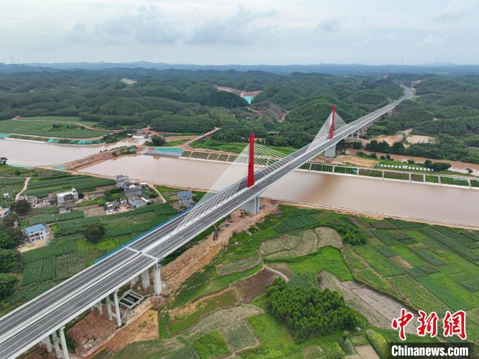 6月26日,由中国能建葛洲坝一公司承建的广西钦州北过境线公路(钦州绕城高速公路)正式建成通车。据了解,该工程是广西实施国家战略《广西高速公路网规划(2018—2030年)》中12条过境线之一,建设有主线桥梁42座,其中钦江特大桥横跨平陆运河。图为广西钦州北过境线公路(钦州绕城高速公路)通车仪式现场。王伟臣 摄